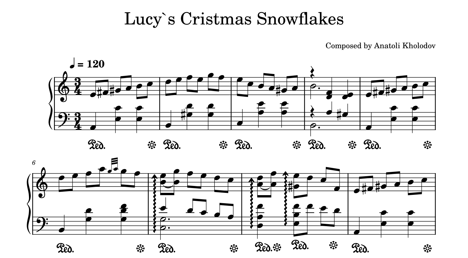 Авторская пьеса для пианино, фортепиано, синтезатора от Анатолия Холодова "Lucy`s Cristmas Snowflakes".